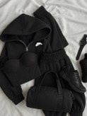 شامل : هودی زیپدار کراپ، شلوار راحتی، تاپ نیمتنه فیت