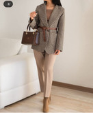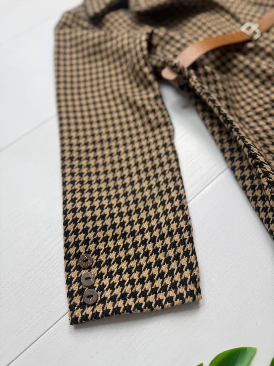 کت دلشاد با پارچهی خاص توییت موهر طراحی شده تا گرما، لطافت و جذابیت همزمان رو برات بیاره. طرح چهارخانهی کلاسیکش در دو تُن خاص نسکافهای روشن و تیره، با کمربند چرمی خوشدوخت ترکیب شده و ظاهر شیک و ظریفش رو کامل کرده.