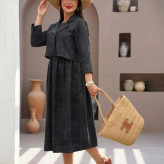 متاسفانه این کالا در حال حاضر موجود نیست. میتوانید از طریق لیست بالای صفحه، از محصولات مشابه این کالا دیدن نمایید.قد سارافن ۱۲۴، دورسینه ۹۴، قد کت ۴۶، دورسینه ۱۰۴، آستین از کنار یقه ۶۲، بازو ۳۲، پشت کمر کش برای زیبایی بیشتر. سارافن کش دوزی درجه ۱ شده، پشت گردن دکمه خورده، کت لایه کاری شده، تنخور عالی. جنس: گازوییلی شانتون درجه ۱.