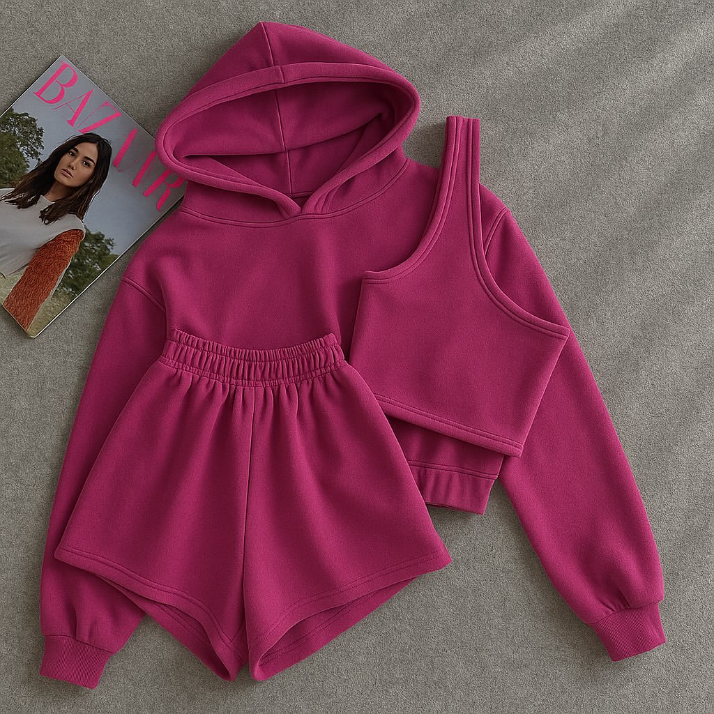 ست سهتکه راحتی زنانه| هودی، شورتک و تاپ اسپرت کد محصول Kh1300